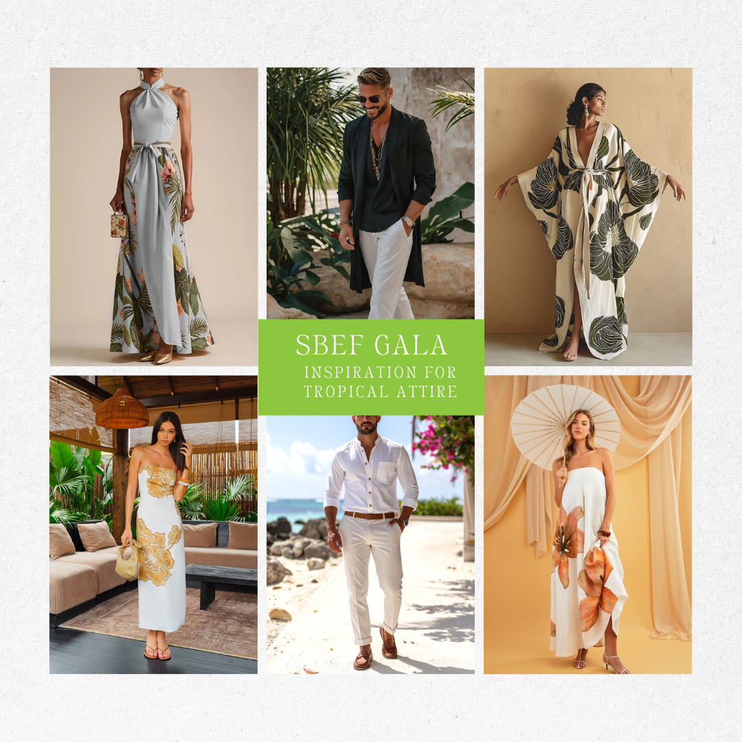 SBEF’s Gala theme is “A Night In The Tropics”!!! Looking for attire inspo? The event is semi-formal: Elegant, island-inspired evening wear. Dressy but relaxed – think cocktail attire in breathable fabrics. Have fun with it, and we can’t wait to see you there! Get tickets here.